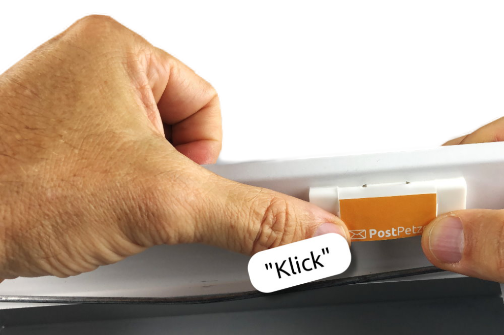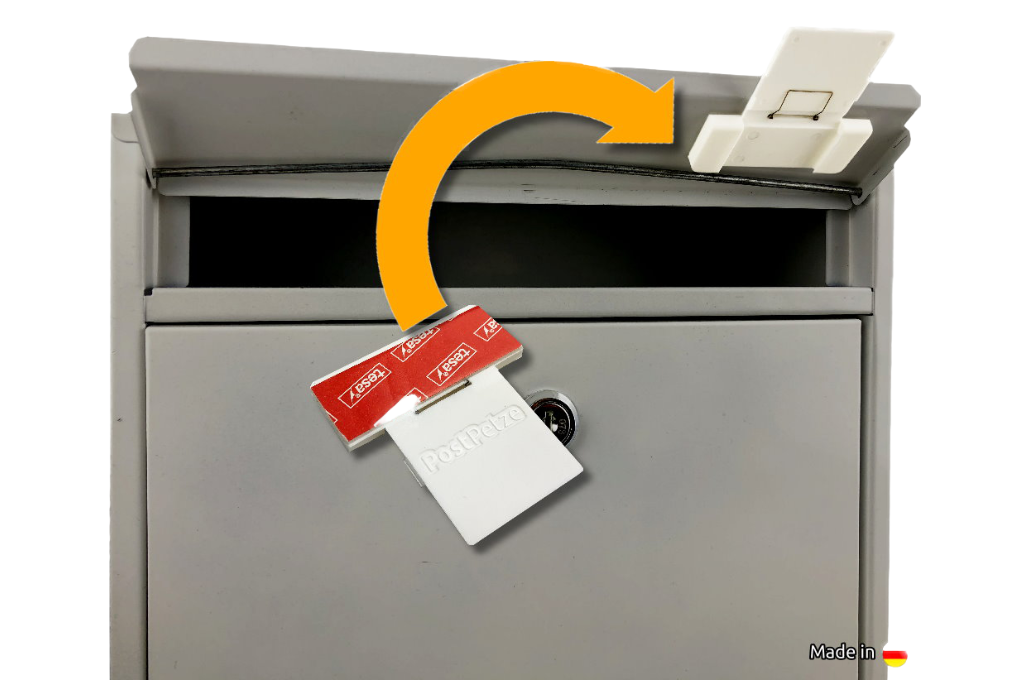 Der Briefmelder wird einfach mit dem hochwertigen 3M Montageklebeband integriert.