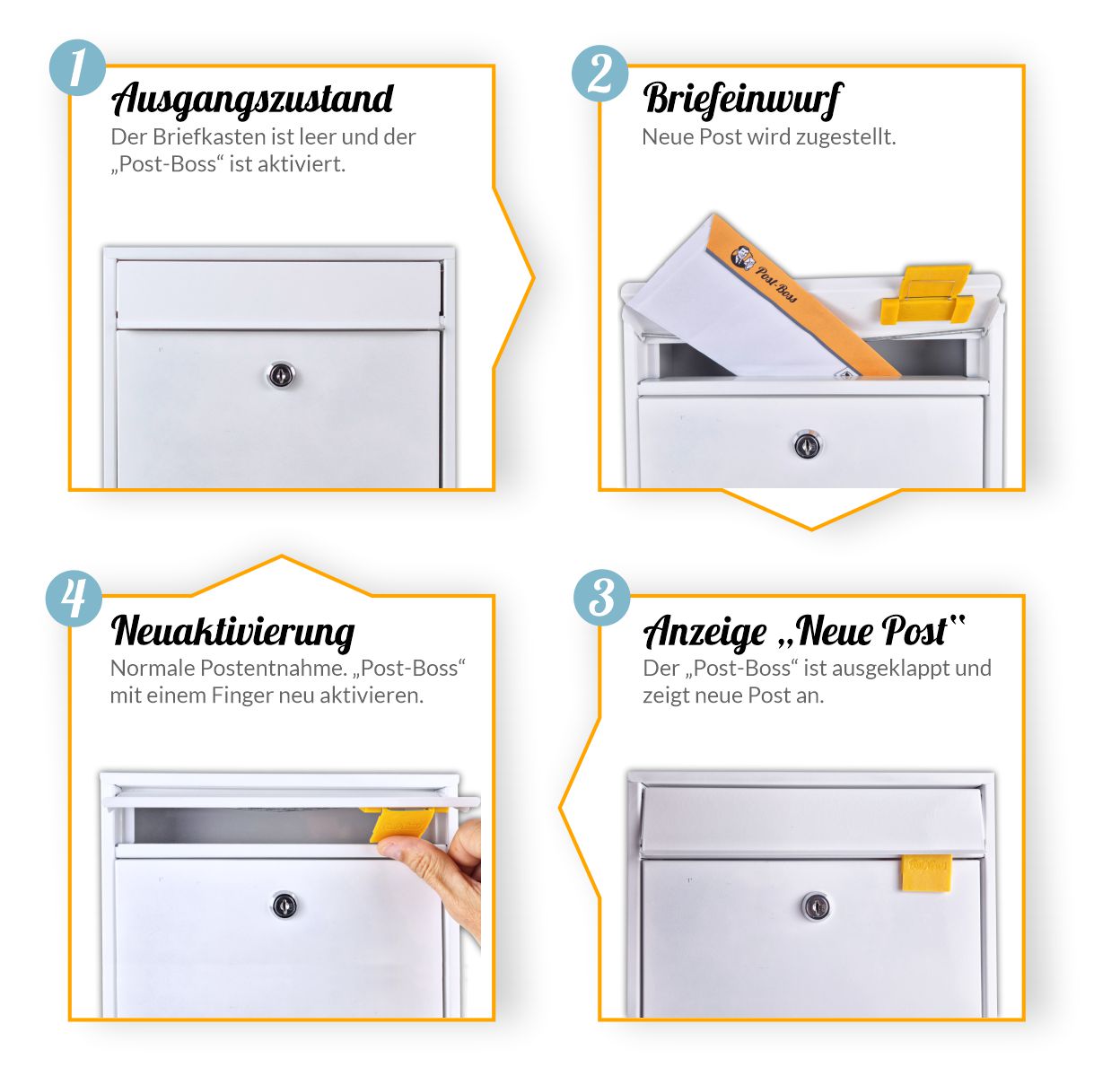 Der "Post-Boss" funktioniert rein mechanisch. Keine App. Keine Technik. Keine Batterien.